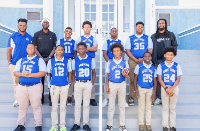 Tubman coach Calvin Thompson receive’s Chick-fil-A’s Best in Class Award.